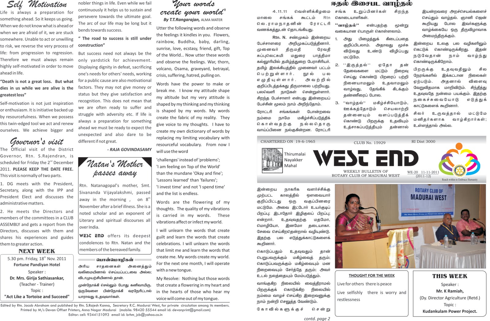 "MIRROR" the apt caption chosen for the District Seminar on Public Image - Program which was held at Hotel Sangam on 2nd October 2011 at Trichy which was sponsored by RC of Trichy MidTown.